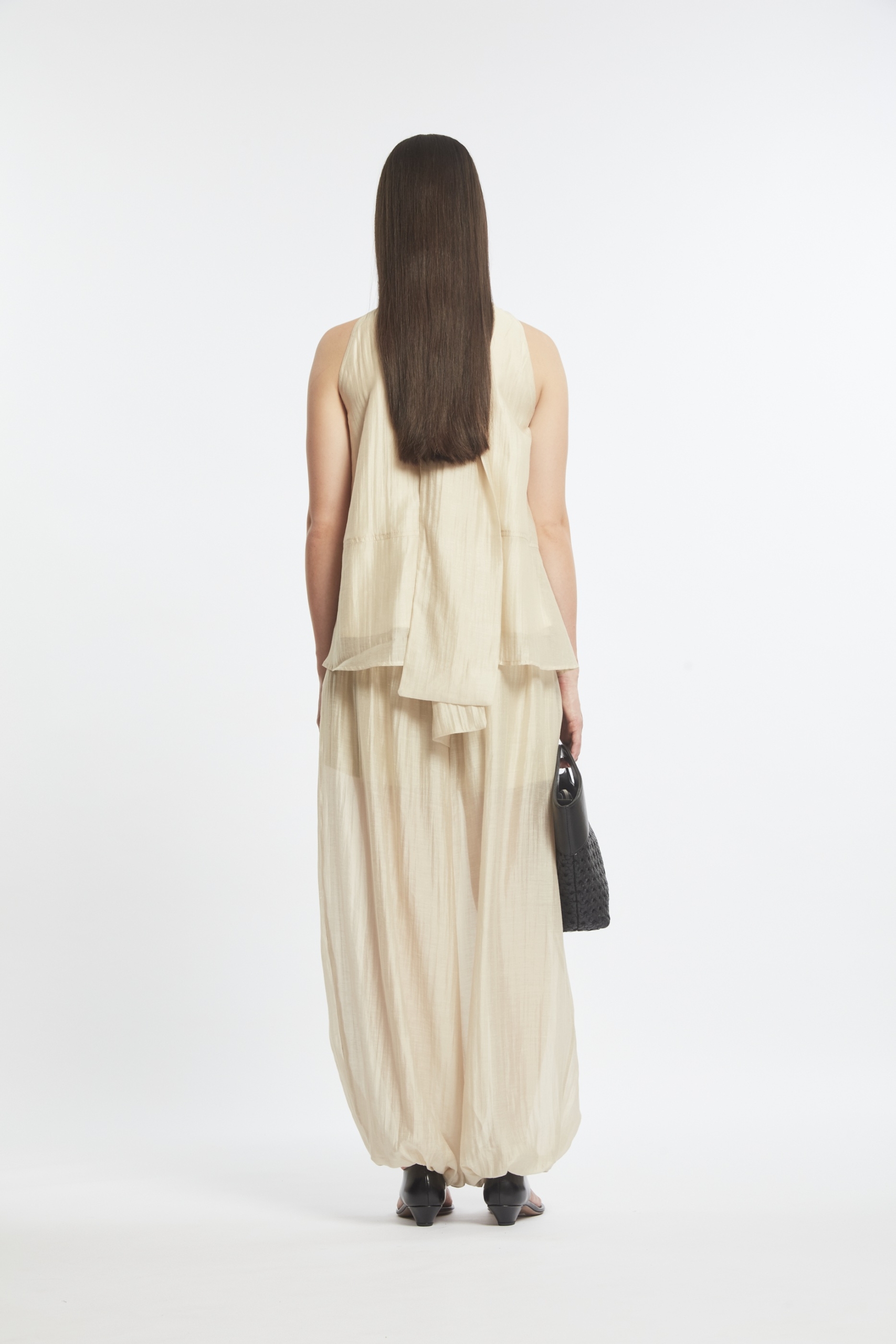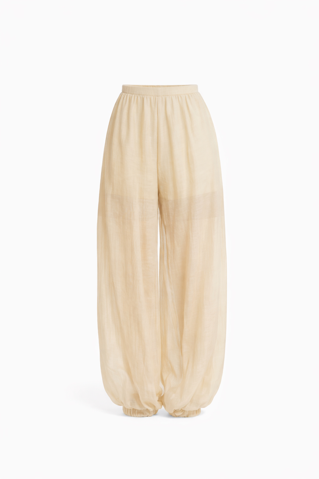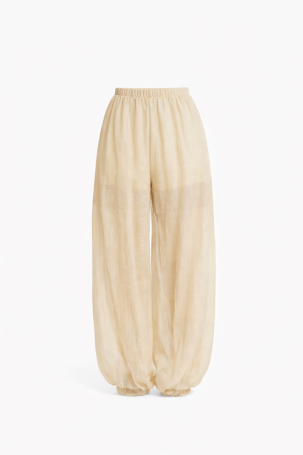 Crafted in a lightweight TENCEL™ blend with linen, the fabric has a subtle texture and a soft, airy drape that enhances the pant’s fluid expression. The elasticated waistband adds ease, balancing comfort with a refined, minimal look.